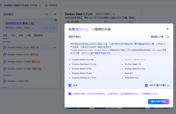 1、火山引擎,字节的平台,每个模型有50万token使用额度