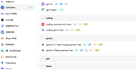 3、Aihubmix:这个里面有最新的gemini 3.1,免费的。